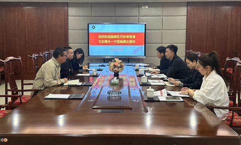 5月9日上午,保定高新区行政审批局局长马云一行莅临国文股份开展调研指导工作。国文股份总经理杨亚雄带领董事会秘书兼财务总监谢冰倩、项目部经理贺子希热情接待并座谈。