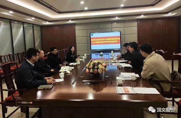 3月8日,保定市地方金融管理局副局长刘宾及河北省上市服务联盟领导、专家走访国文股份。公司研发副总经理刘发国、董事长助理王海明、财务总监田士永、董事会秘书魏凌霄与相关领导、专家进行了座谈。