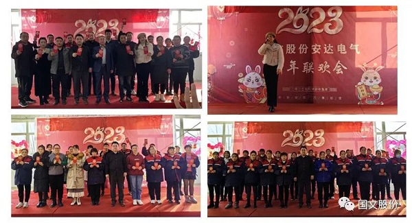 1月7日下午,国文股份安达电气2023年新年联欢会在安达食堂举行。公司全体员工欢聚在这里,举行庆新年包饺子、绩效奖金颁发和员工新春联欢演出活动。