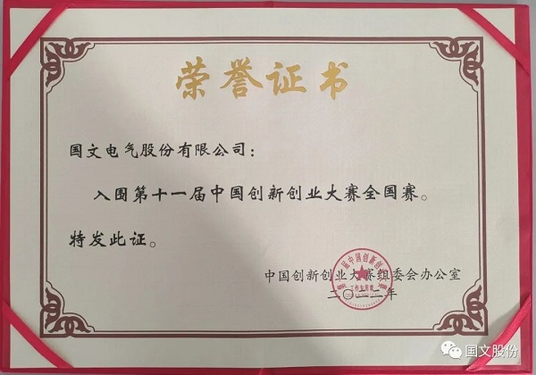 第十一届中国创新创业大赛全国总决赛于2022年12月28日-30日在位于深圳市的中国资本市场学院举办。此前,国文股份500kW/1000V/500A高压速充超级桩已经入围创新创业大赛国赛。