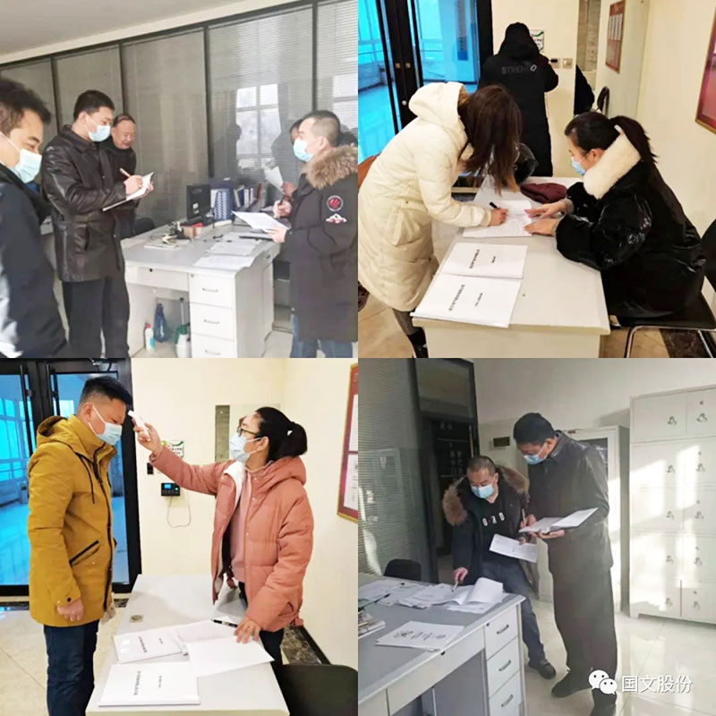 根据高 新区应对新冠肺炎疫情工作领导小组办公室关于包联干部下沉到企业的通知。2021年1月11日上午,高 新区经济发展改革局刘旭局长会同大学科技园高文武部长等,一行三人莅临公司检查指导,研发副总刘发国携综合办公室人员对领导的到访表示热烈欢迎。 刘局长首先对疫情期间依然坚守岗位的工作人员表示了深切的慰问,而后对公司的疫情防控工作进行了检查,并传达了《保定市应对新冠肺炎疫情工作领导小组致广大市民朋友的一封信》、《高 新区应对新冠肺炎疫情工作领导小组办公室关于发热病人处置措施的通知》,强调了如发现37.3℃以上发热病人,立即就地隔离,联系救护车转运至第 一中心医院(西院)发热门诊。后来,刘局长提出三点要求:一是在公司门口设立体温检测台安排人员值班,二是将疫情防控通知张贴在显要位置,三是制作体温检测登记表,每日消毒登记表,外地来访人员登记表。 当前,全国的疫情防控工作,正在紧张有序的开展,河北省多地已经升级成为疫情中、高危险地区。副总经理刘发国表示:国文公司全体员工坚决落实高 新区有关新冠肺炎疫情防控的指示,对领导检查提出的要求,立即整改,迅速落实,响应政府号召,共同打响疫情防控阻击战。